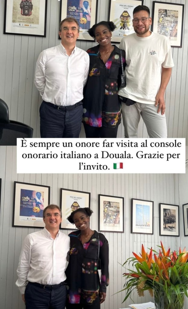 Il Console, Mauro Battistella, ha ricevuto con molto piacere la visita di cortesia della Signora Danielle Frédérique MADAM, accompagnata dal fidanzato Giacomo. L’incontro è stato un’occasione per rinnovare una relazione speciale tra l’Italia e il Camerun, come evinciamo dalle sue parole: