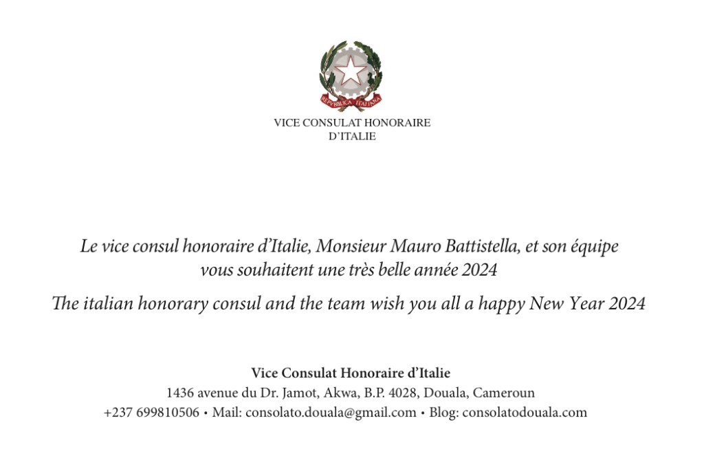 è sempre un piacere leggerti. Ti ringraziamo per gli auguri e ti porgiamo un cordialissimo saluto. Ti saremo, altresì, grati se tu estendessi i nostri saluti a Cristina, Giorgio nonché a tutte e tutti coloro che abbiamo conosciuto durante la loro permanenza in Camerun. Vi ricordiamo con simpatia.