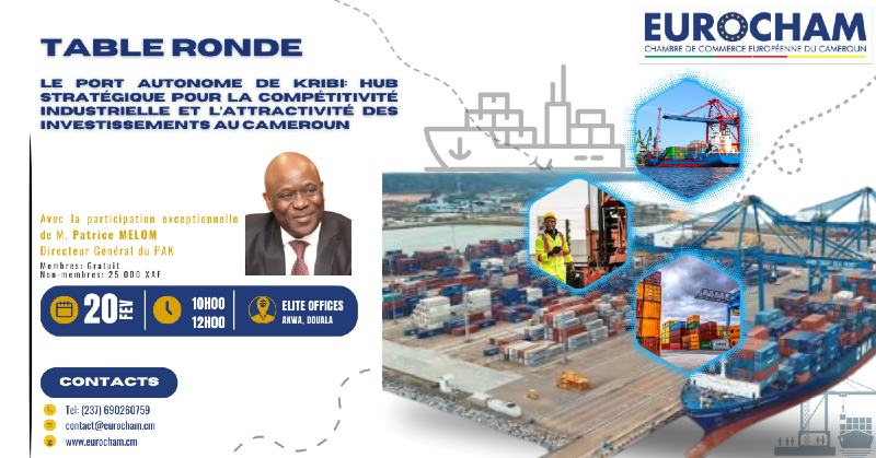 Eurocham Cameroon a le plaisir de vous inviter à une table ronde exclusive sur l’attractivité du Port Autonome de Kribi (PAK), en présence de son Directeur Général, M. Patrice Melom.