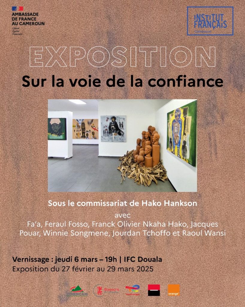 L’Institut Français du Cameroun à Douala présente l’exposition “Sur la voie de la confiance”, sous le commissariat de Hako Hankson. Cette exposition met en lumière les œuvres de huit artistes camerounais : Fa’a, Feraul Fosso, Franck Olivier Nkaha Hako, Jacques Pouar, Winnie Songmene, Jourdan Tchoffo et Raoul Wansi.